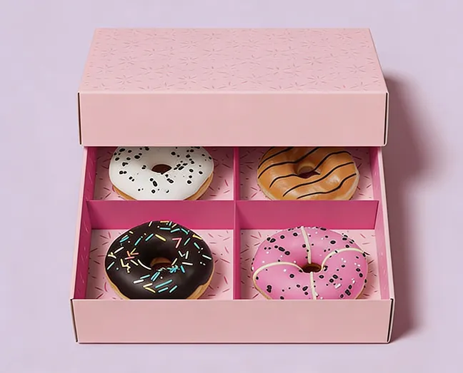 The following specifications outline all essential features, materials, customization capabilities, and production details for high-quality Donut Boxes. Designed for bakeries, cafés, and food brands, these boxes provide durability, presentation appeal, and full branding flexibility for single or multi-count donut packaging.