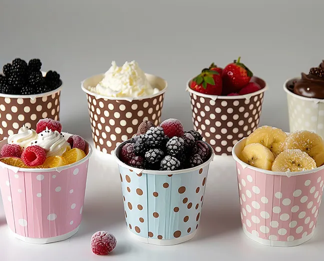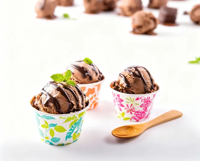 | Dimensions | Fully customizable; standard sizes available for pints, cups, bars, and mini ice cream packs |